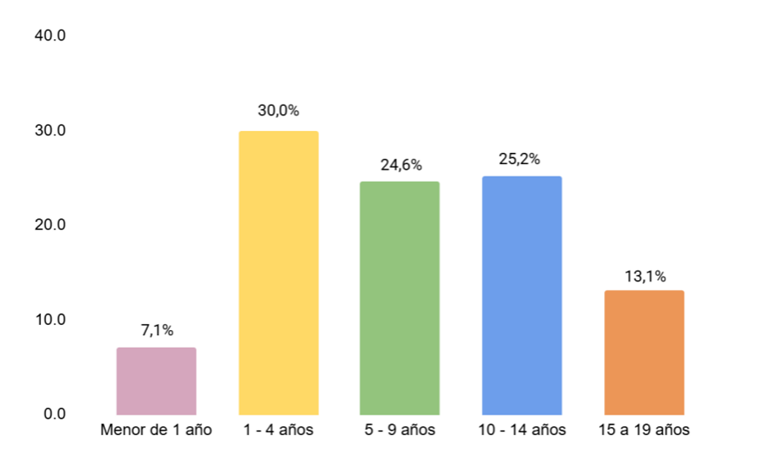 Distribución de casos según grupo de edad de 0 a 19 años. n=40.782